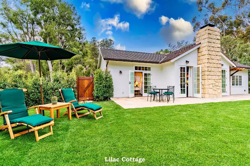 Lilac Cottage, a charming 1,750-square-foot retreat, awaits by San Ysidro Creek. Surrounded by picturesque gardens, this haven beckons with its serene atmosphere. As you enter